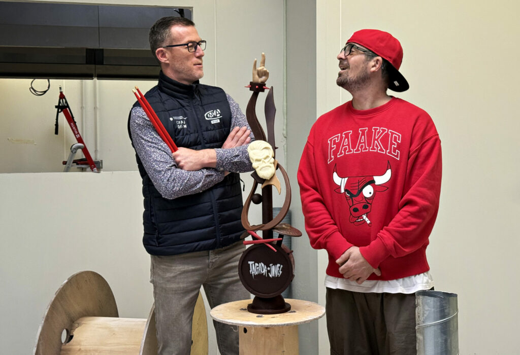 Les apprentis BTM Chocolatier 1ère année de CMA Formation Saint-Brieuc – Ploufragan ont récemment mis à l’honneur leur créativité et leur savoir-faire en réalisant des pièces artistiques en chocolat sur le thème du rock. Une expérience unique qui a pris une dimension musicale grâce à la visite de « JOB », le batteur du groupe de rock métal Tagada Jones.