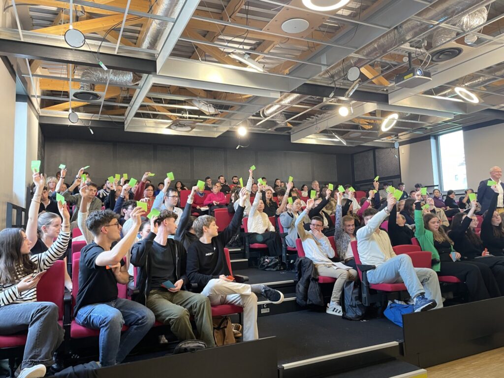Les 70 jeunes participants à cette journée, se sont répartis en 7 groupes politiques et devaient se mettre dans la peau d’un député européen.