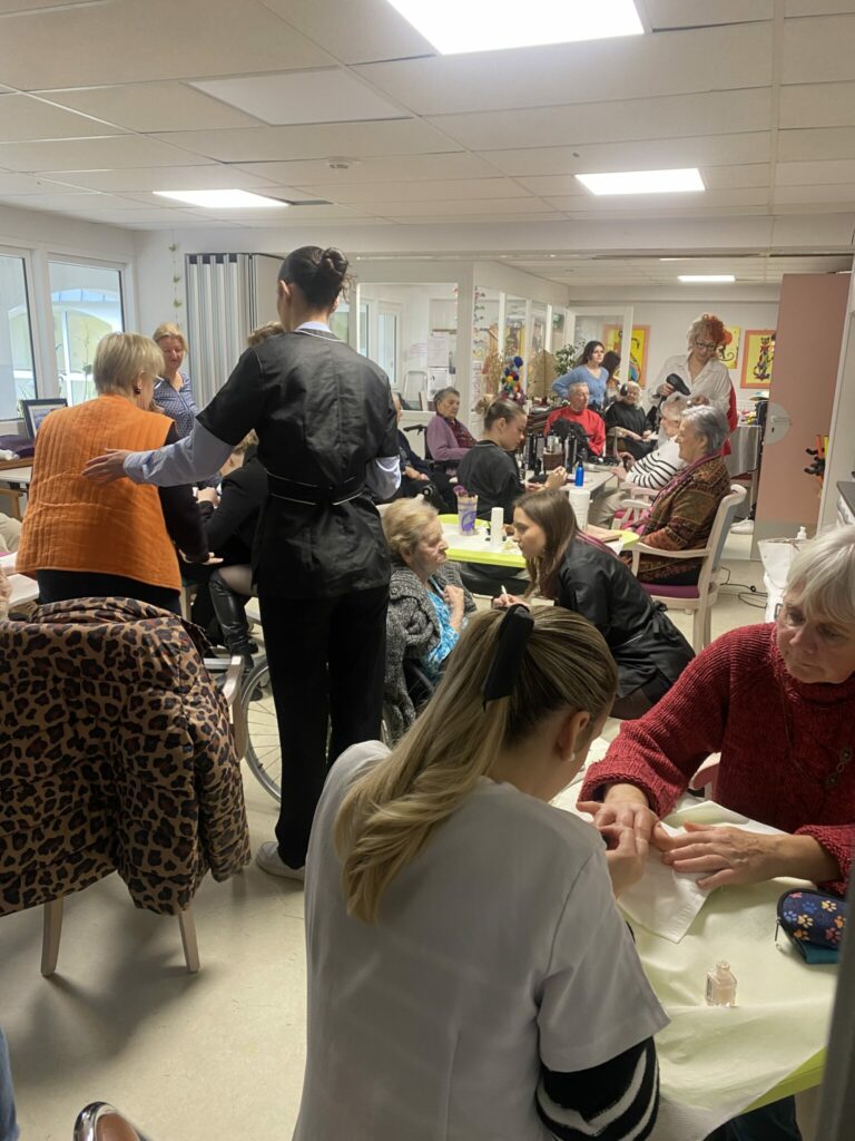 Un moment d’échange intergénérationnel permettant à nos apprentis de s’exercer sur des peaux matures et des cheveux expérimentés pour un moment privilégié avec les résidents. 💅